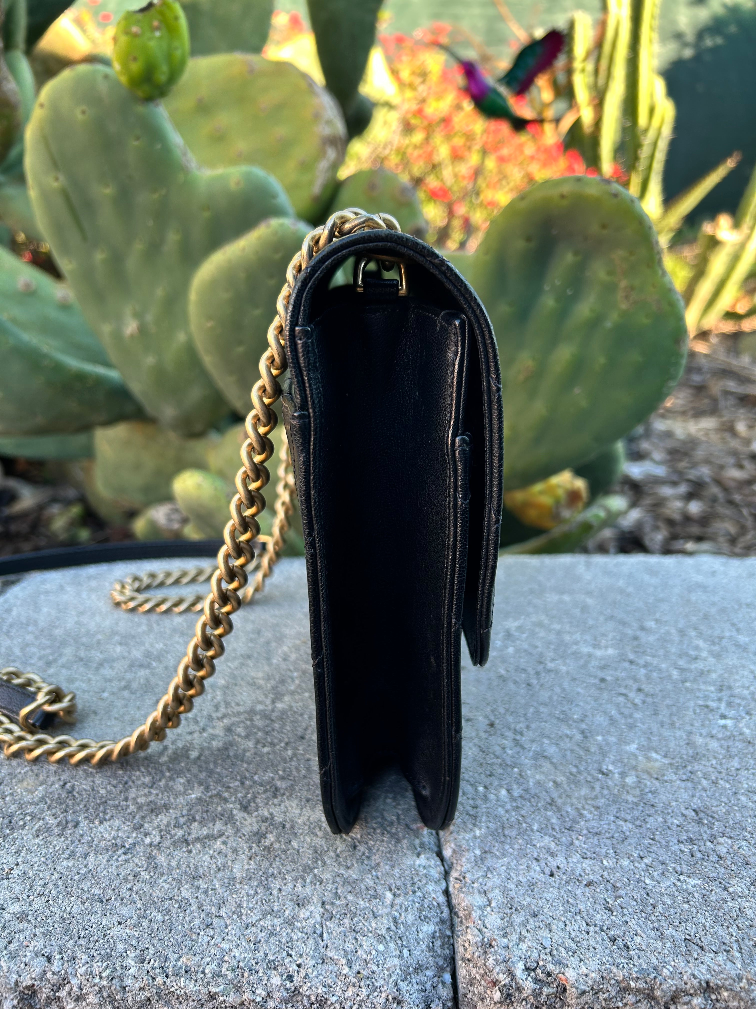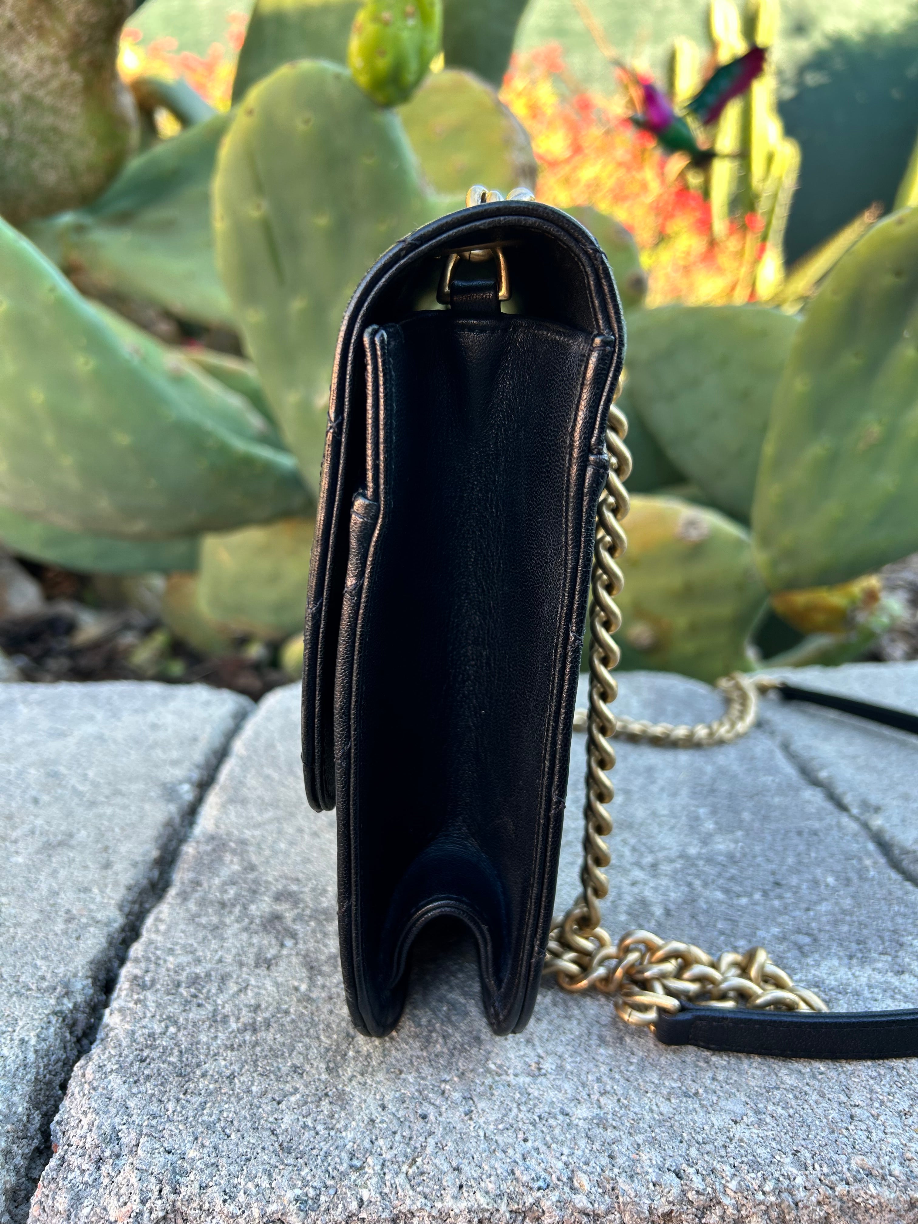 Great condition. Black goatskin leather with gold/copper hardware. Minor scratches. Clean cloth interior. Comes with dust bag and certificate of authenticity.