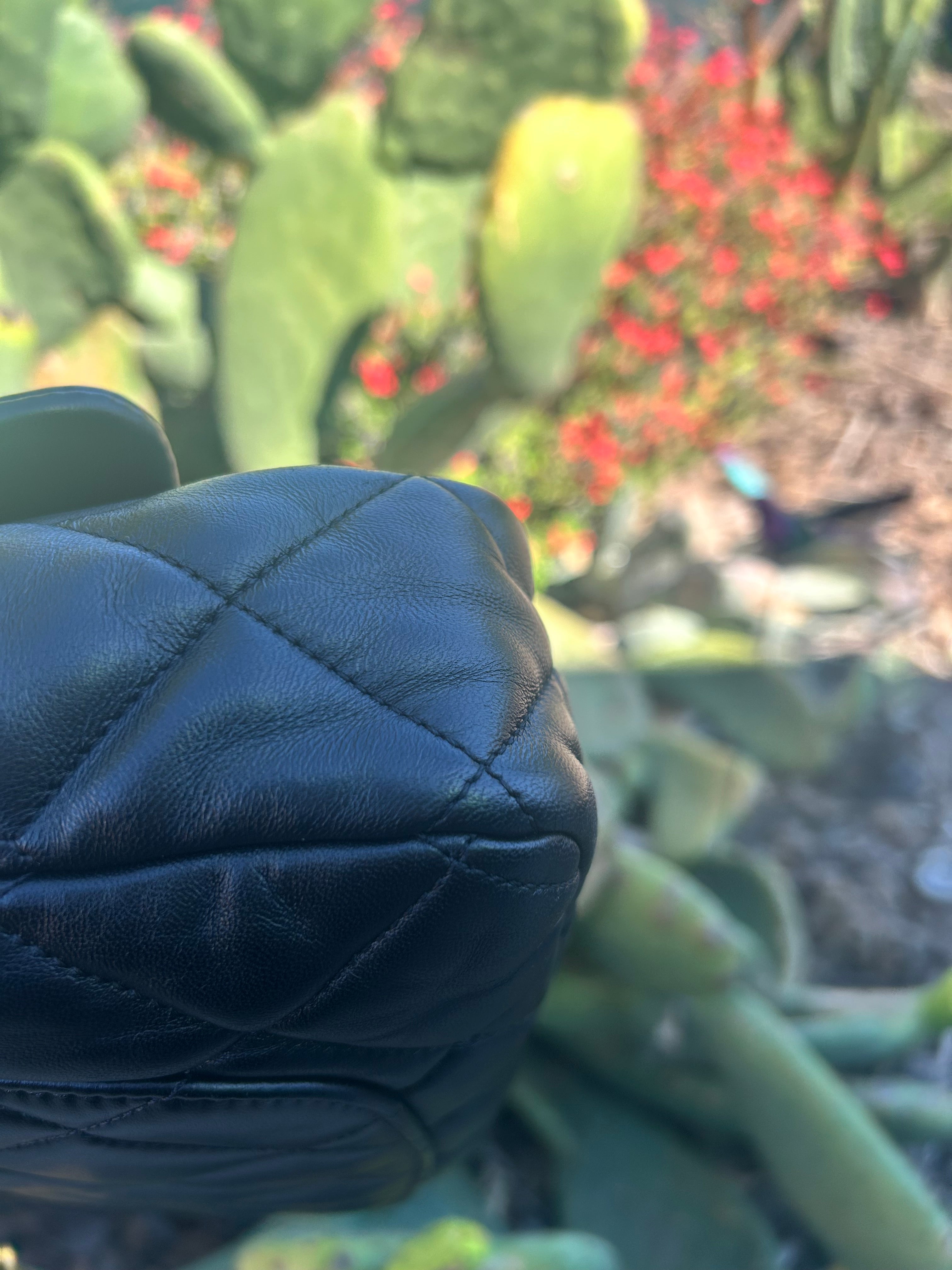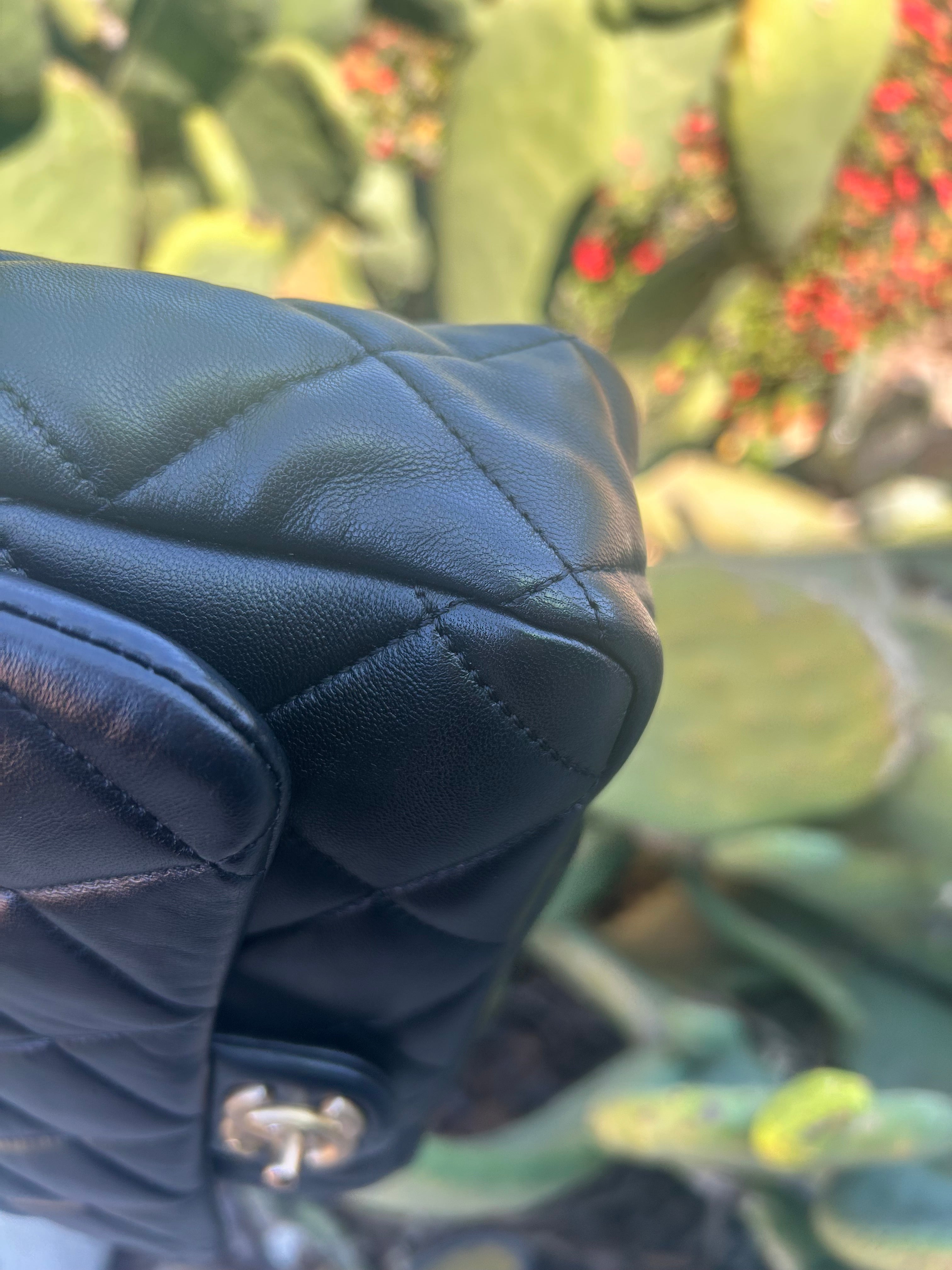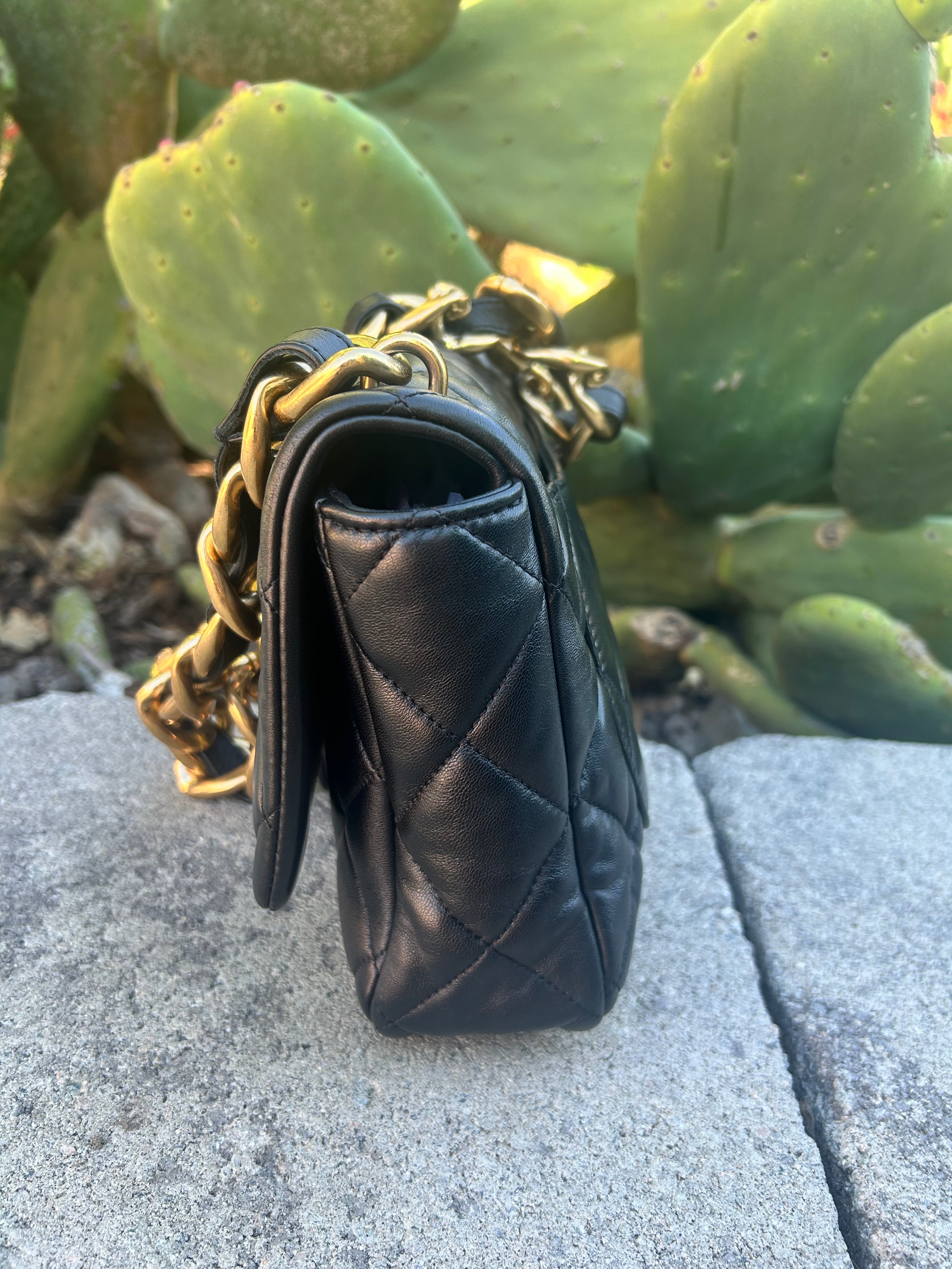 Great condition. Black lambskin with aged gold hardware. Microchipped 2022. Some minor scratches and patina to hardware. Comes with box and dust bag.