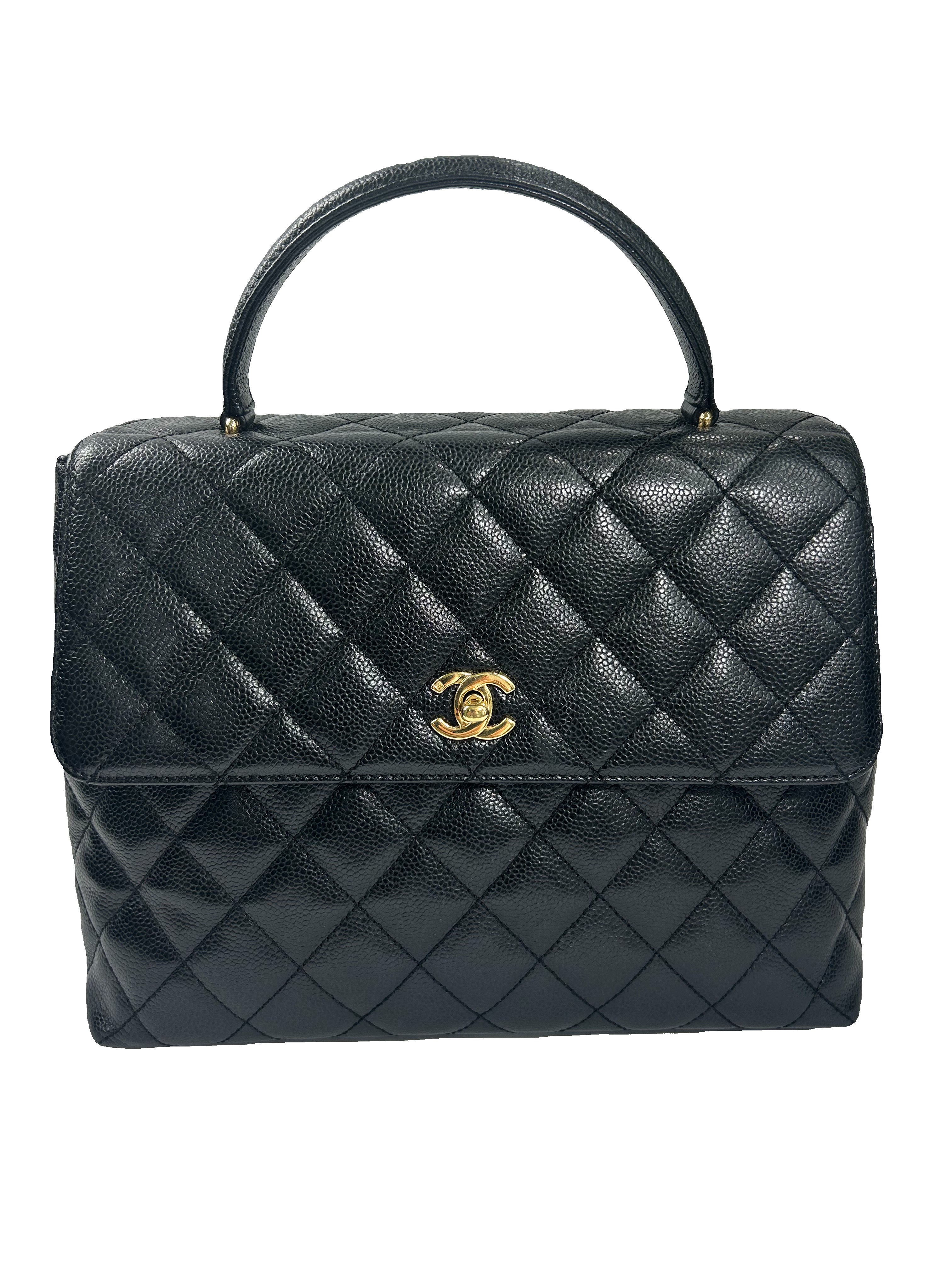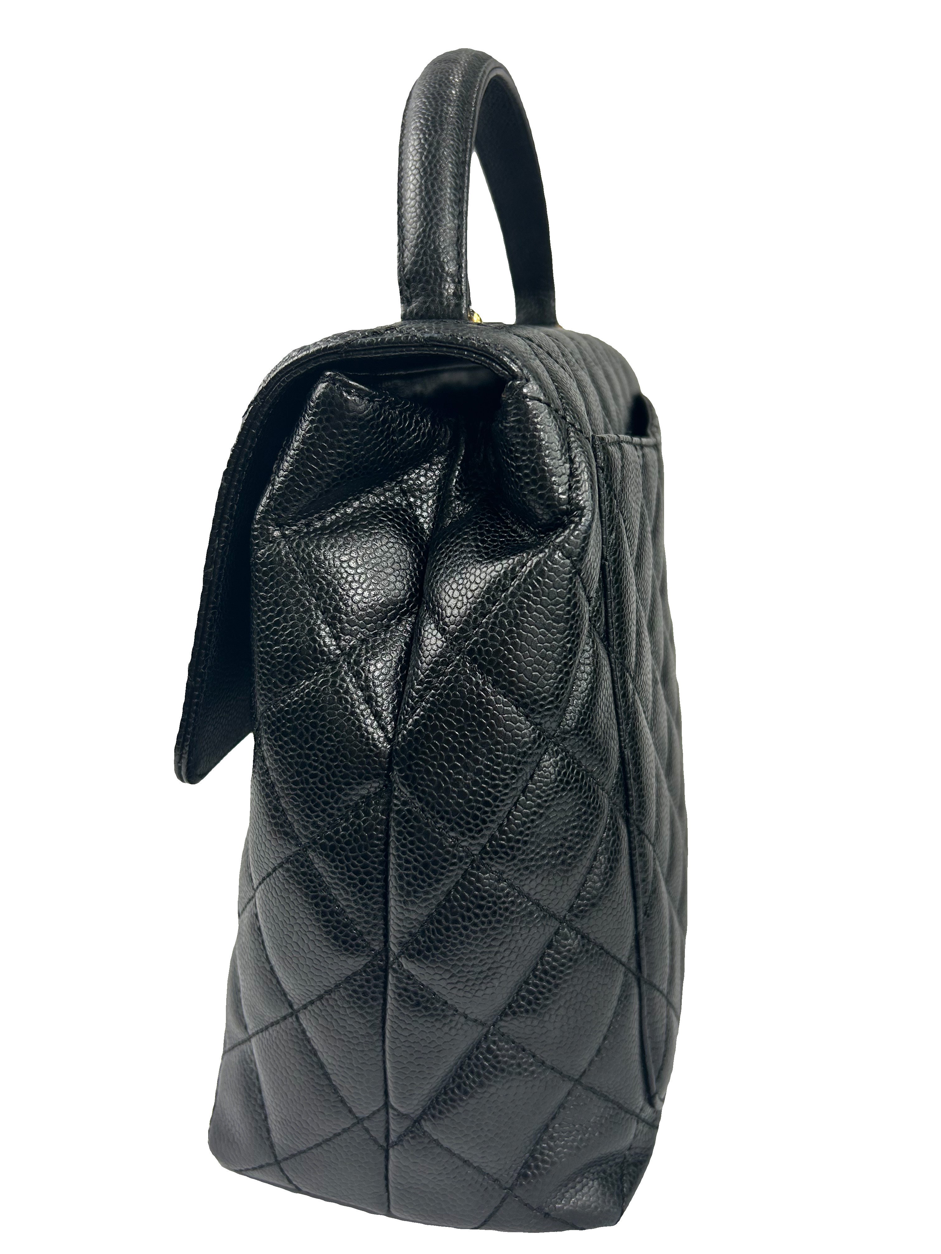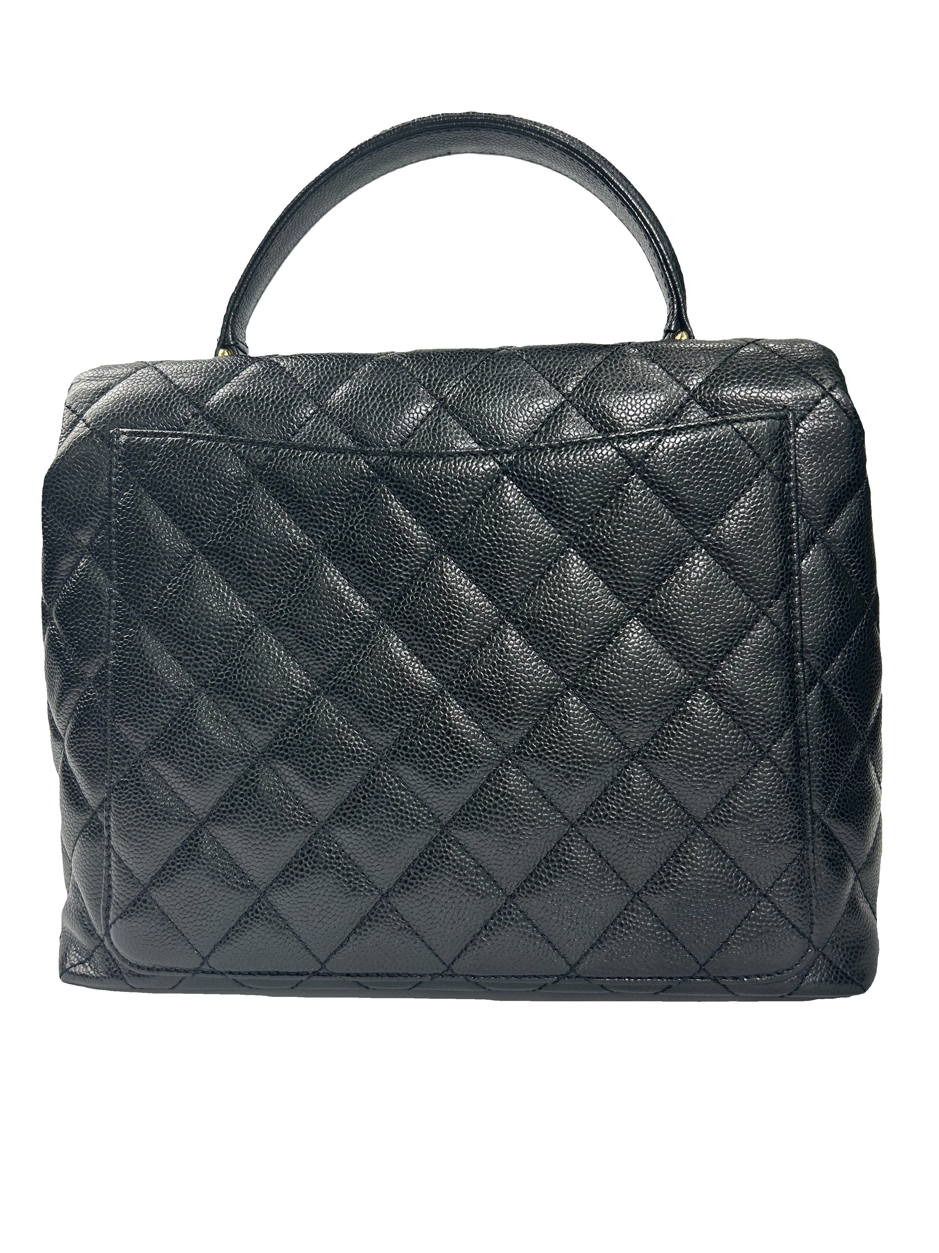 Vintage Classic Top Handle Flap Bag. Quilted Caviar Jumbo. Great Conditon. Black. 12X9X5
