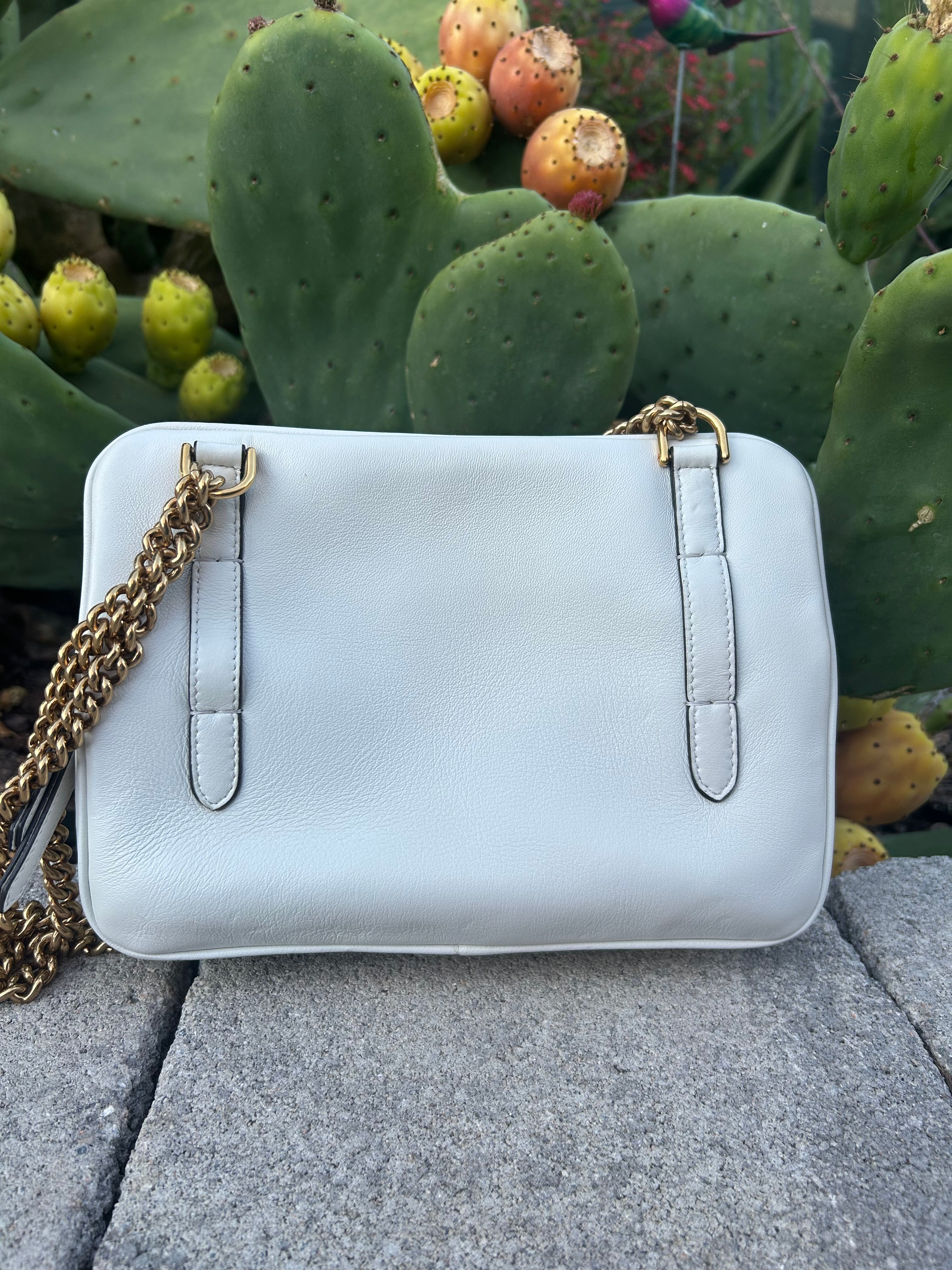 New! Unused condition! Comes with extra strap for belt option. Gold chain can be worn as shoulder bag or crossbody.
