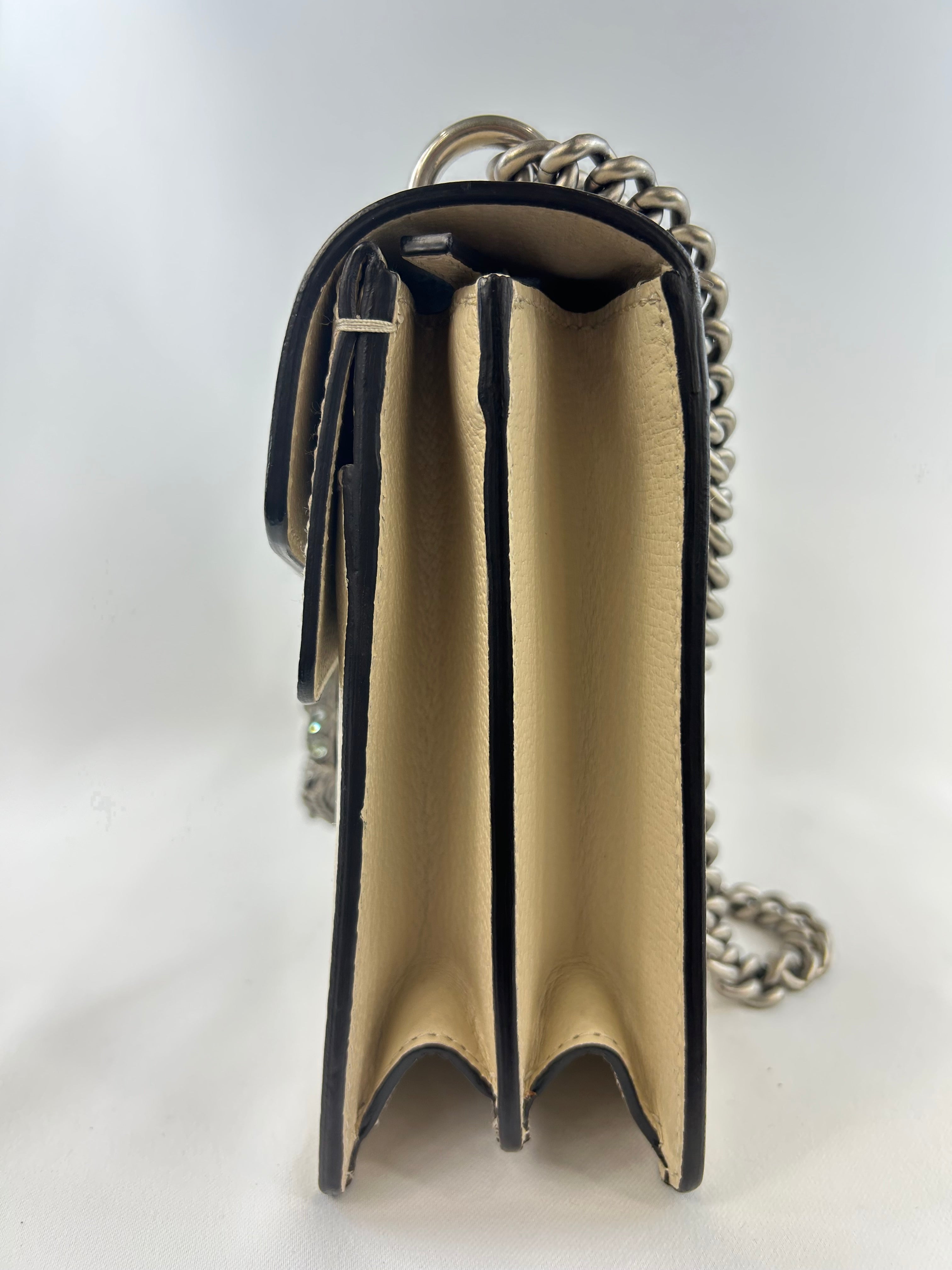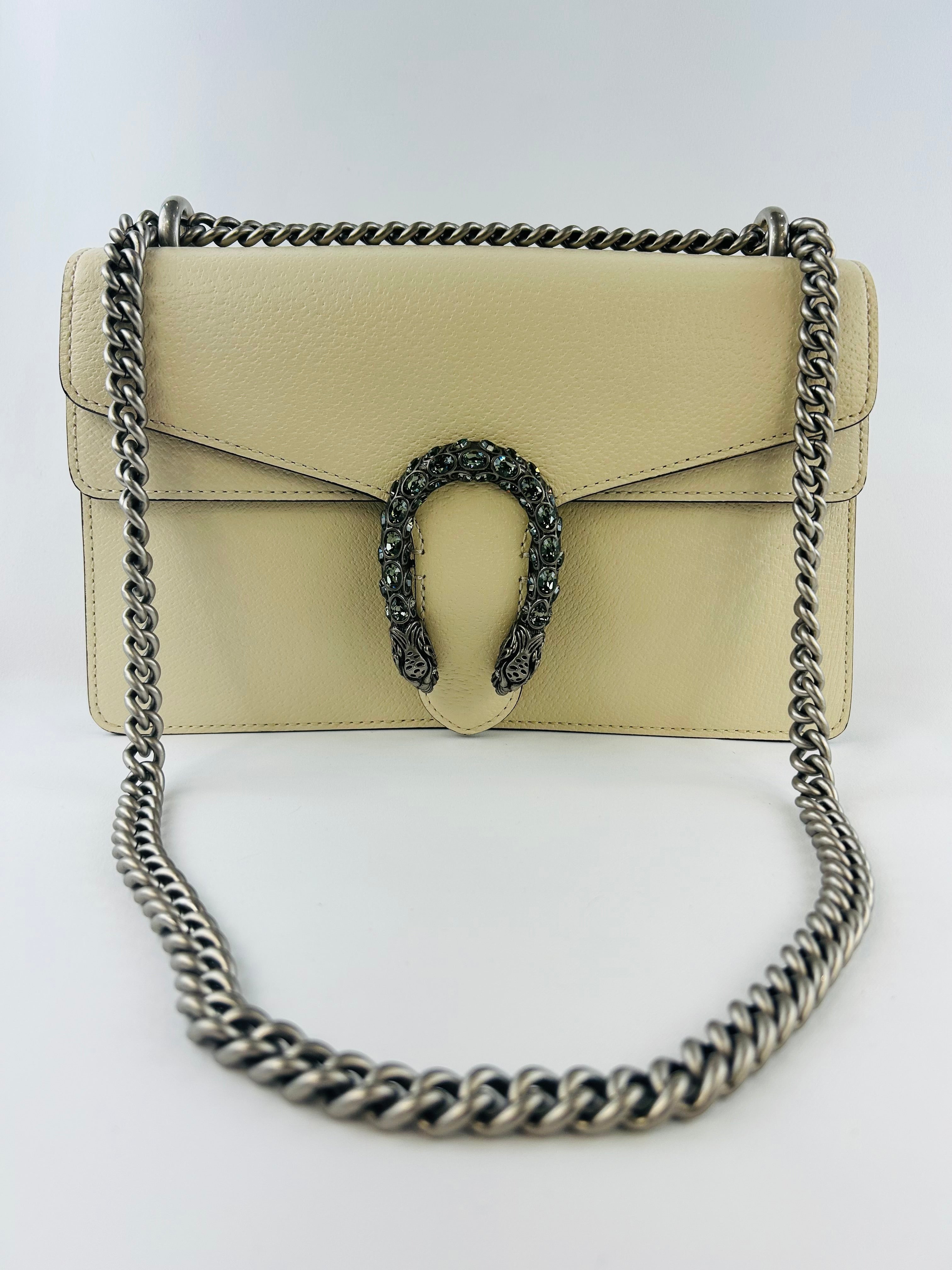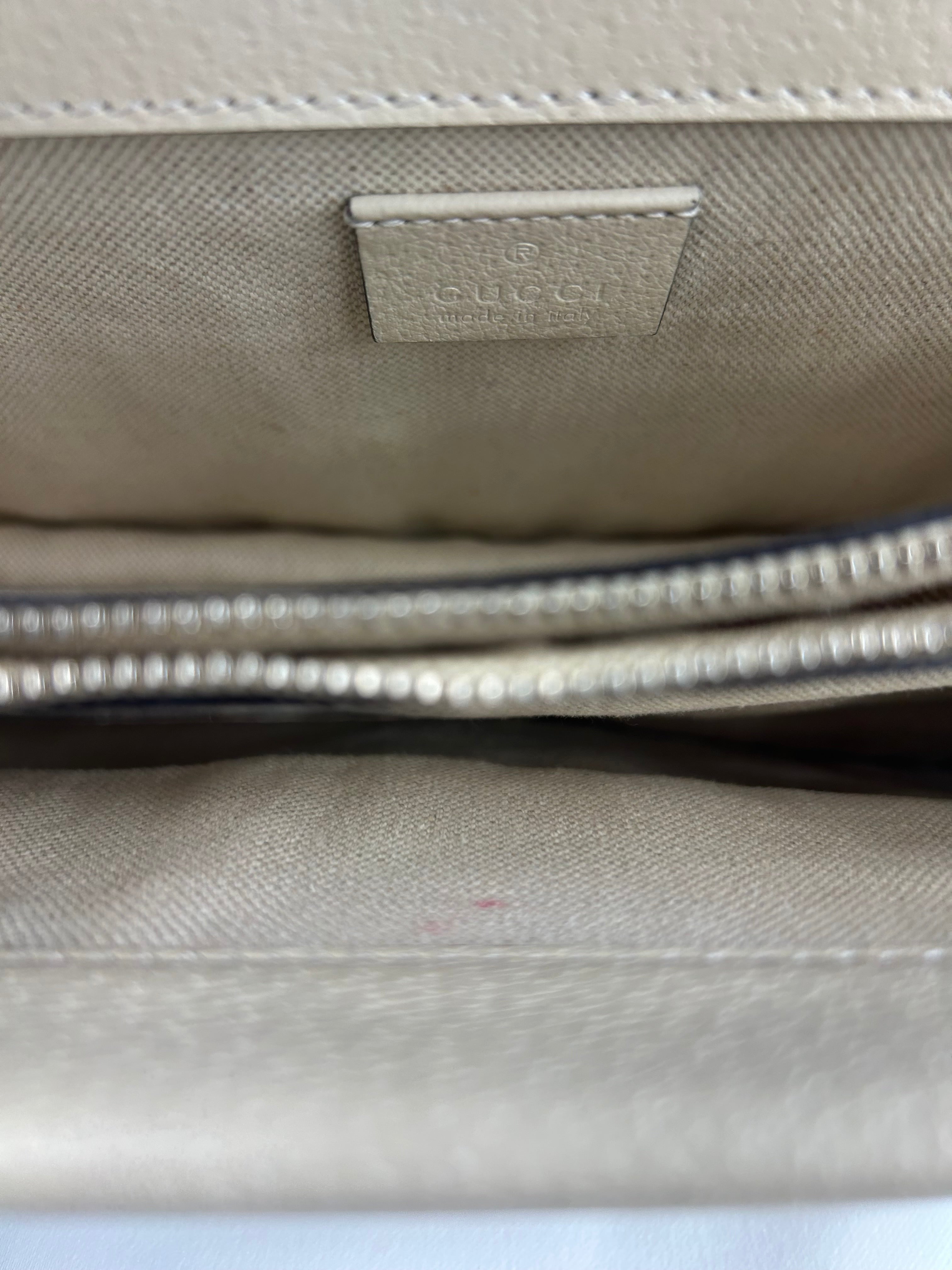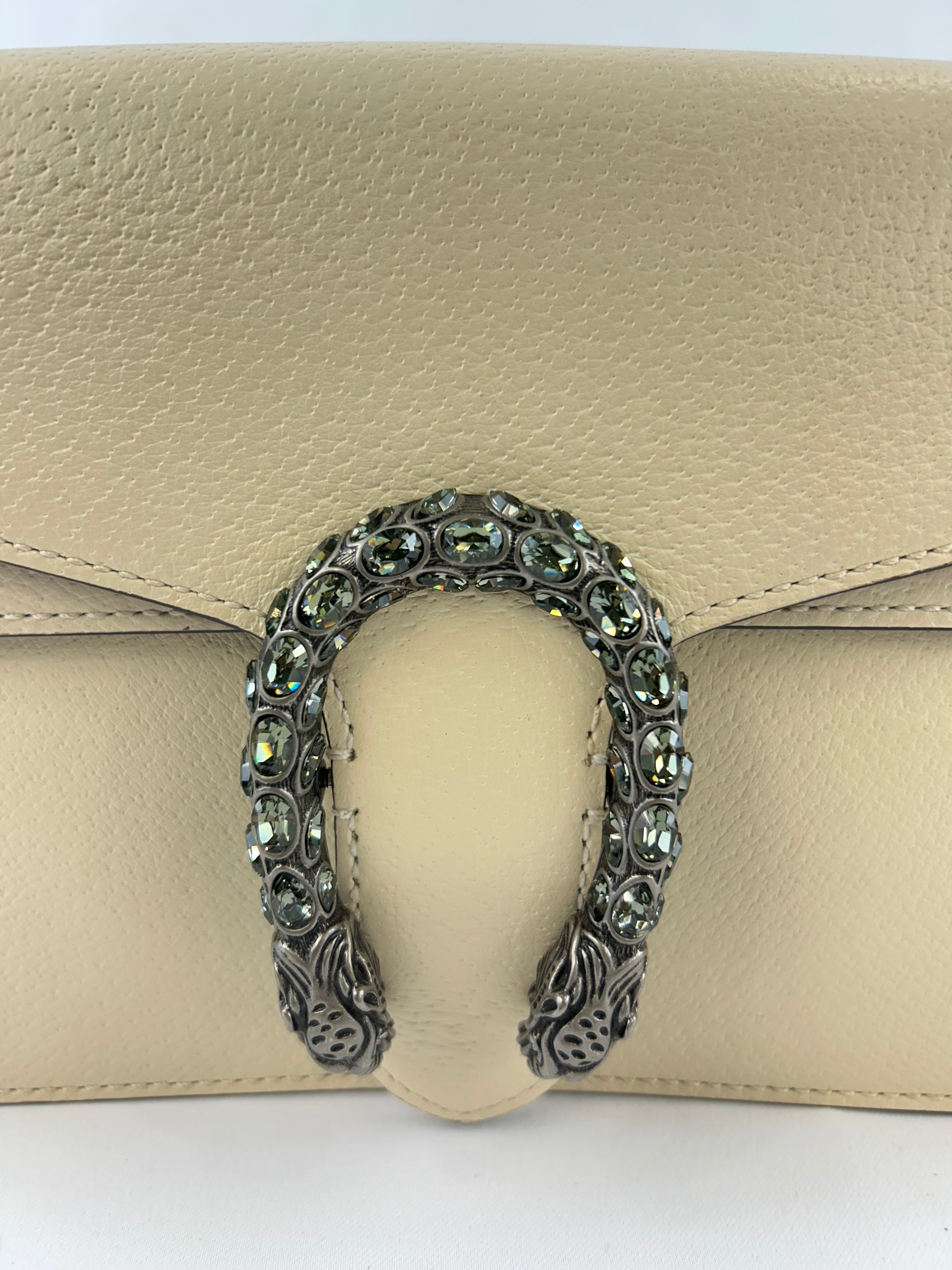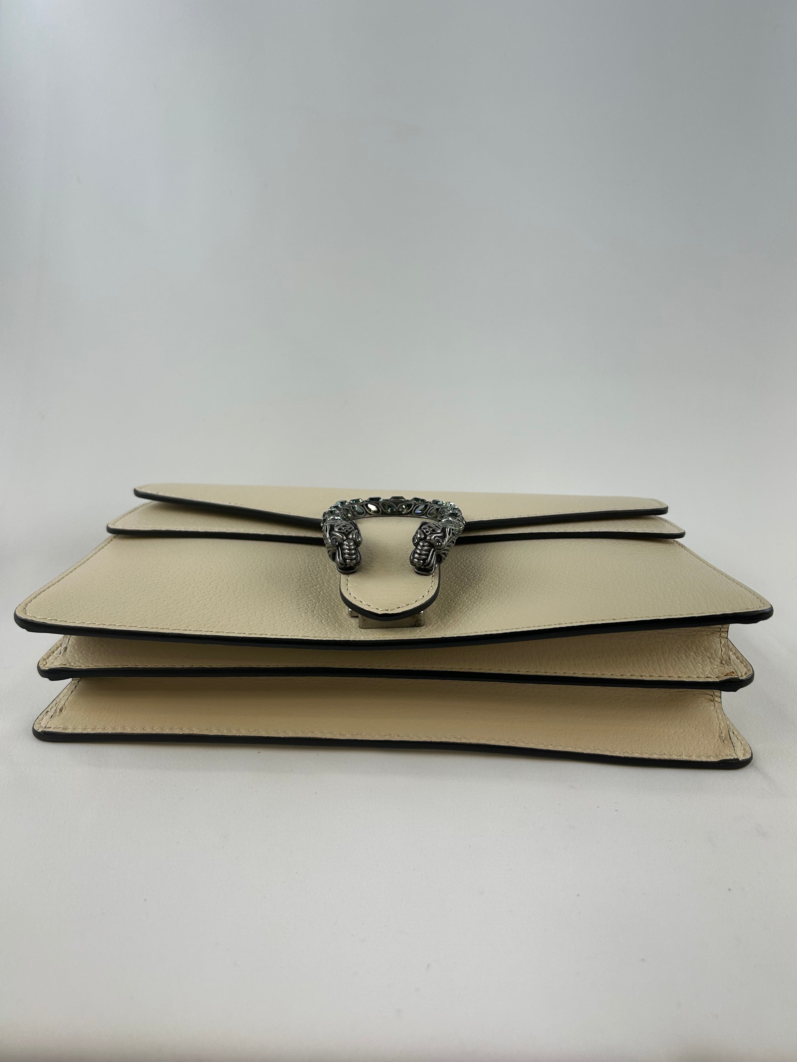 Gucci Dionysus Beige Cowhide Handbag. Small size. Unused condition. Silver hardware with jewel accent.