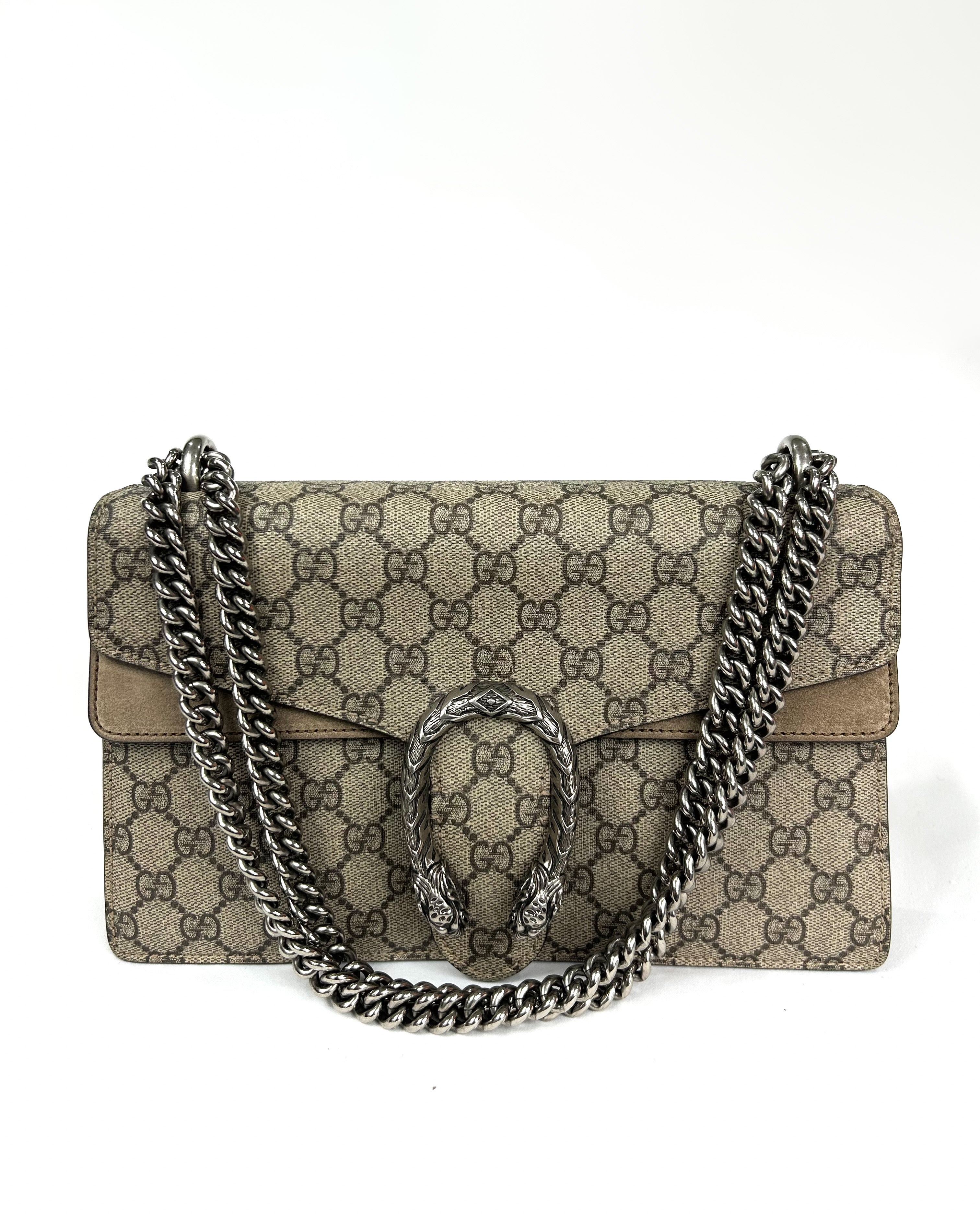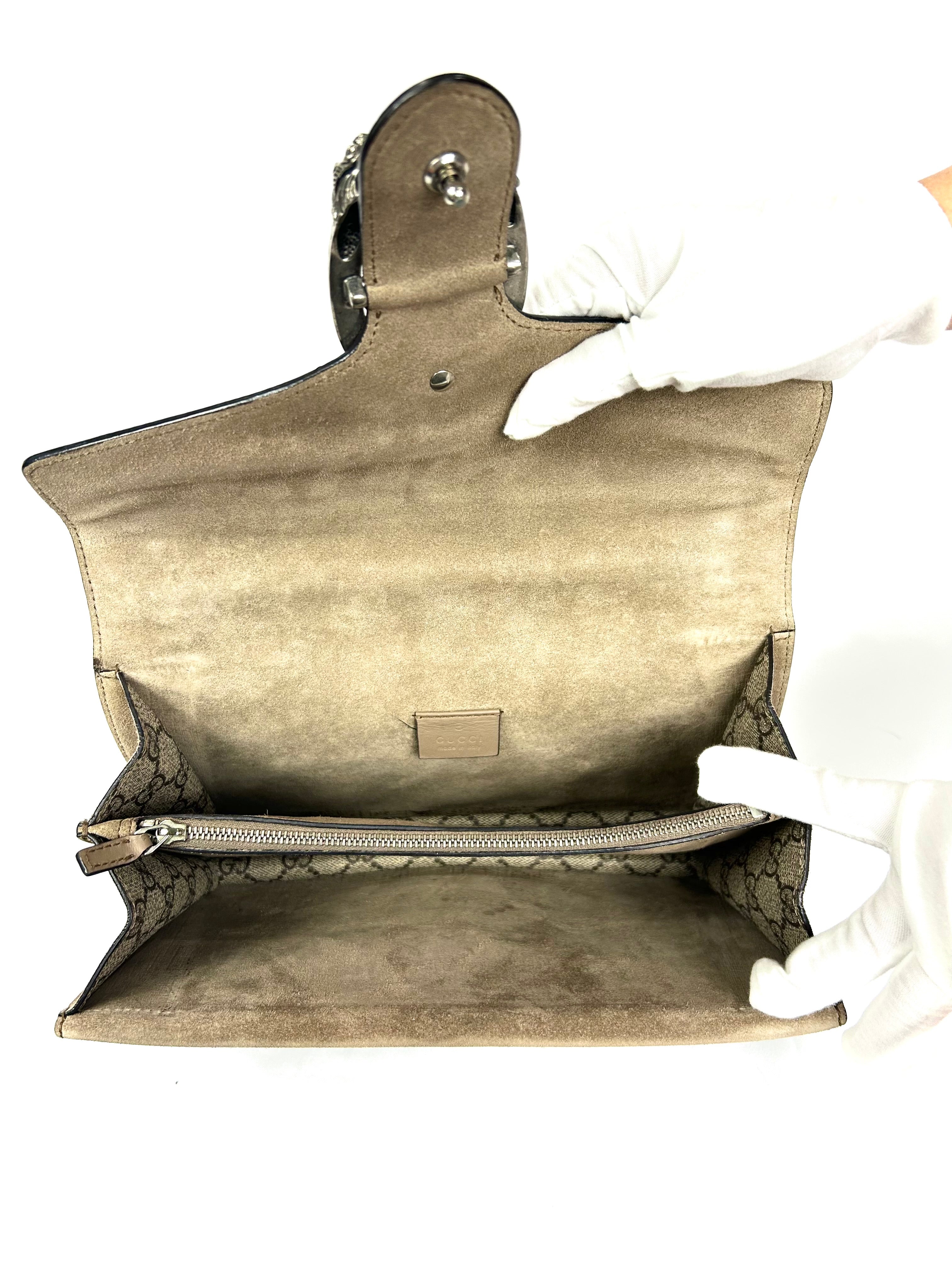Gucci GG Supreme Dionysus. Great condition. Suede lining. Silver hardware. 2-way chain strap. 11Lx6.75Hx3D. Strap drop 14.5 in. No stains, odor or noticeable damage.