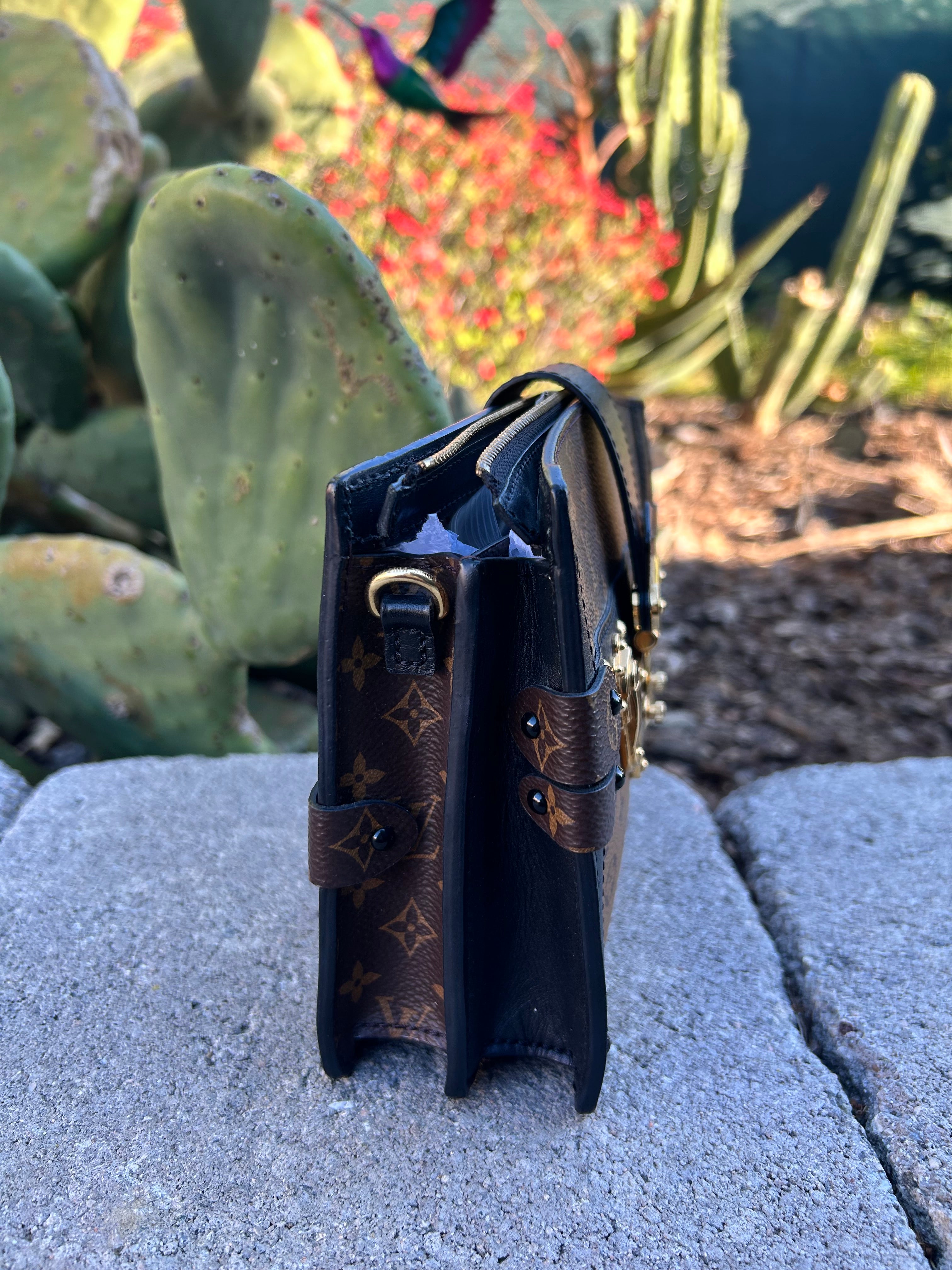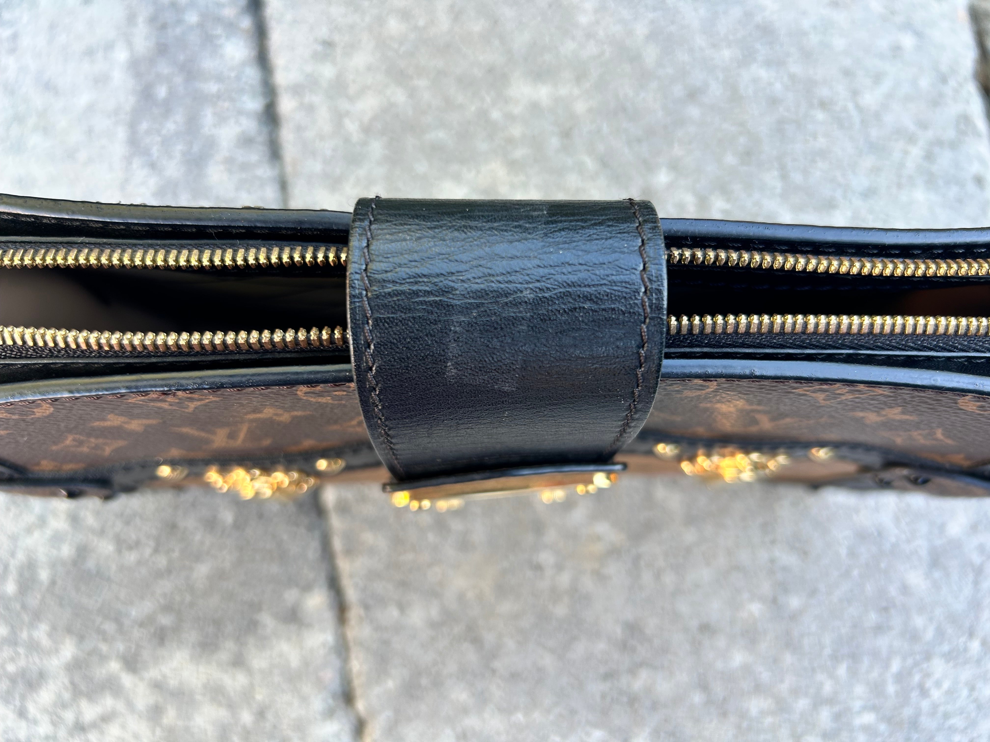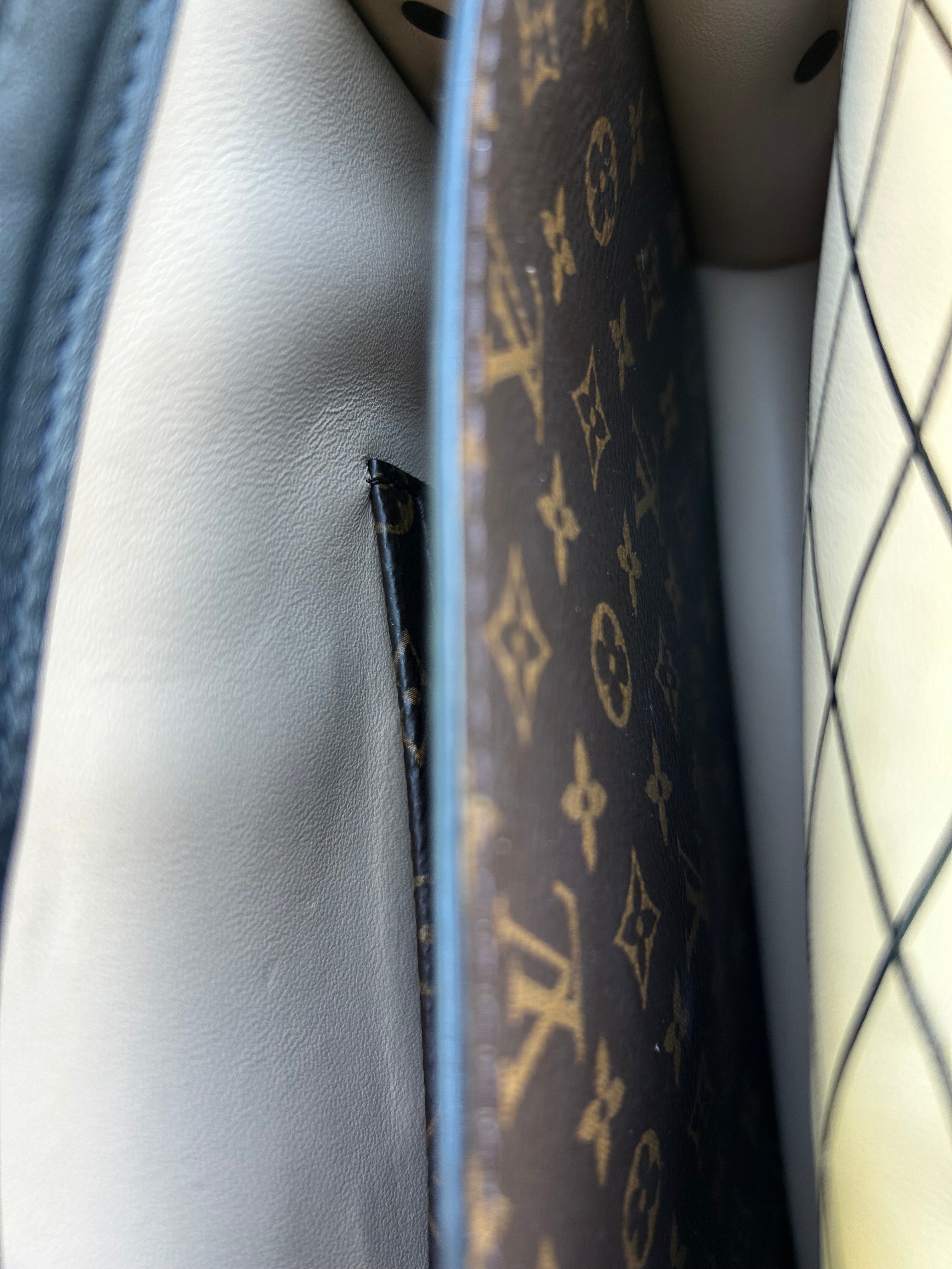 Great condition. Minor smudge to leather. Minor scratches to gold hardware. Comes with detachable straps, dust bag and box.