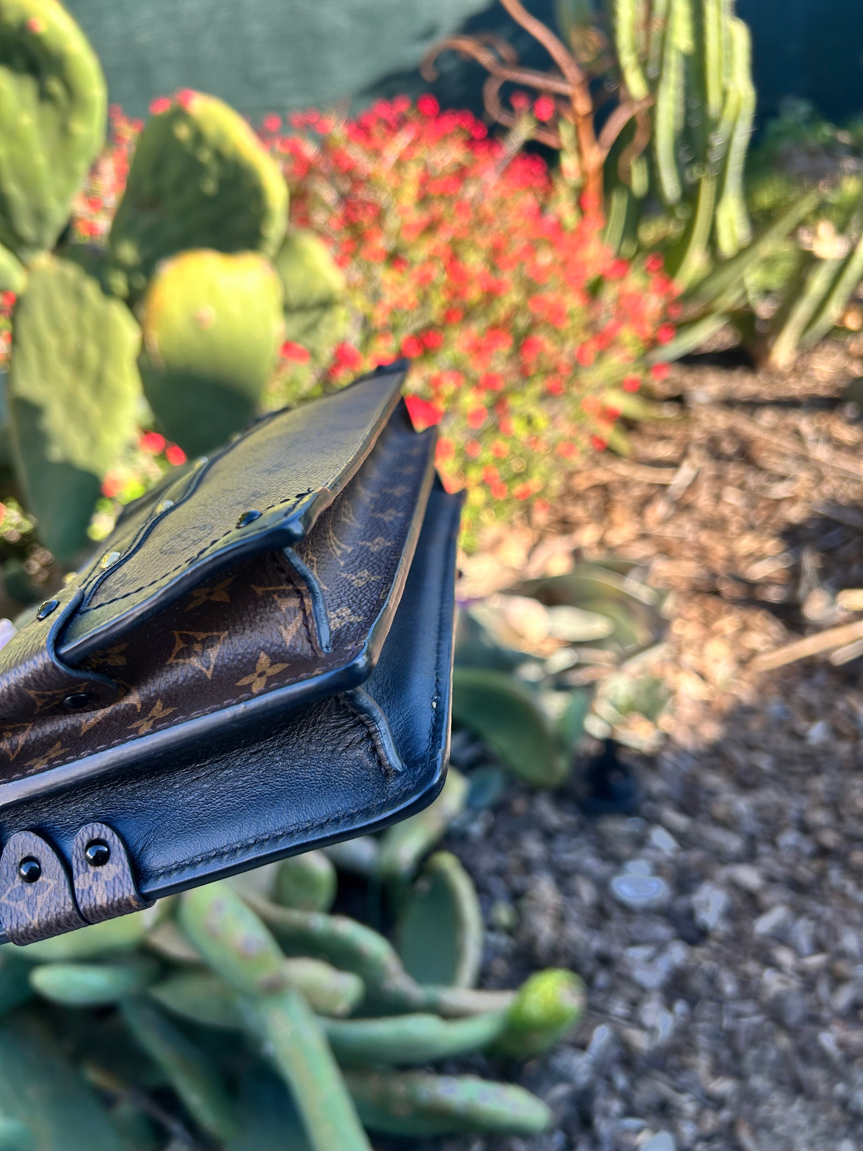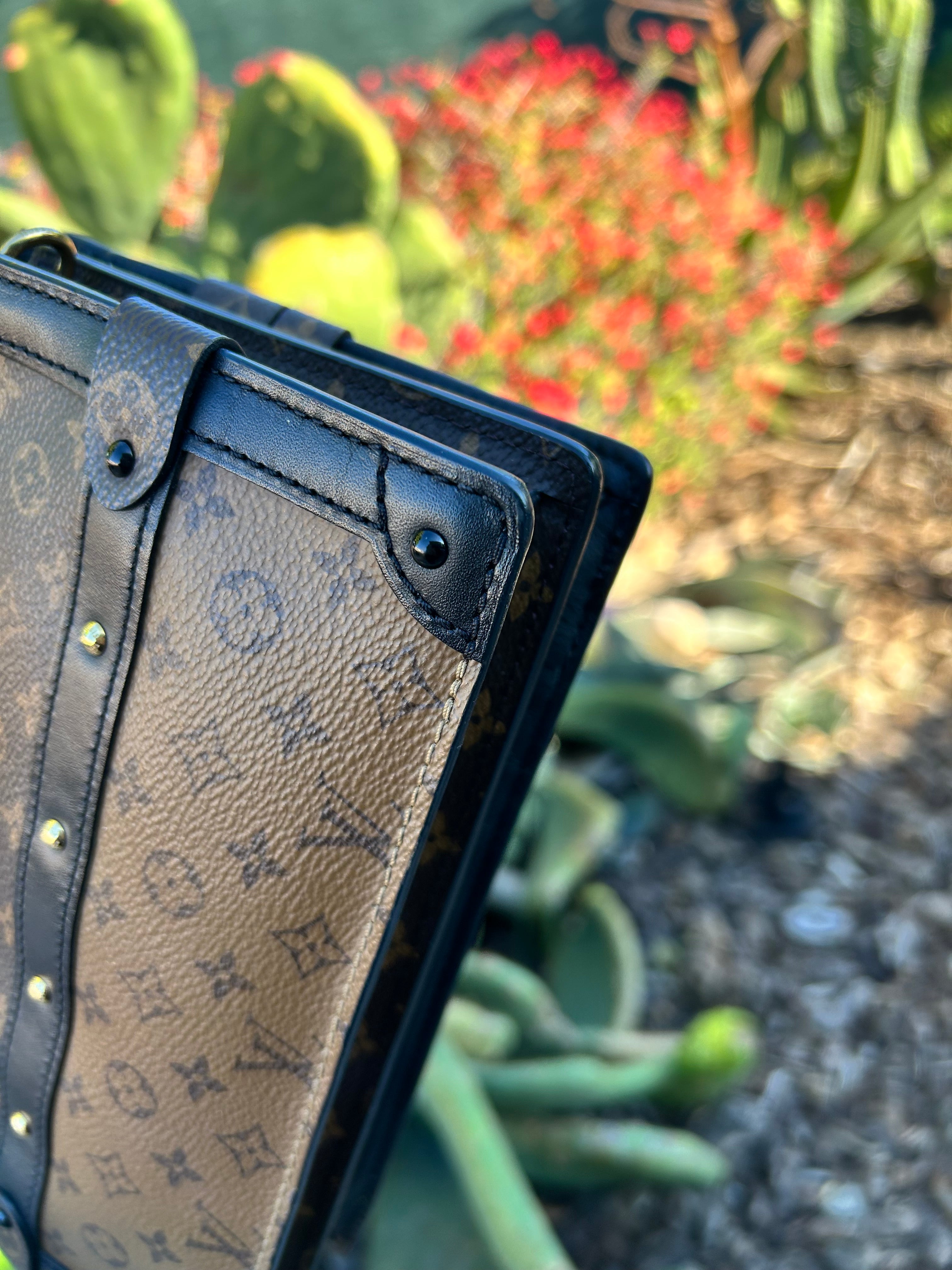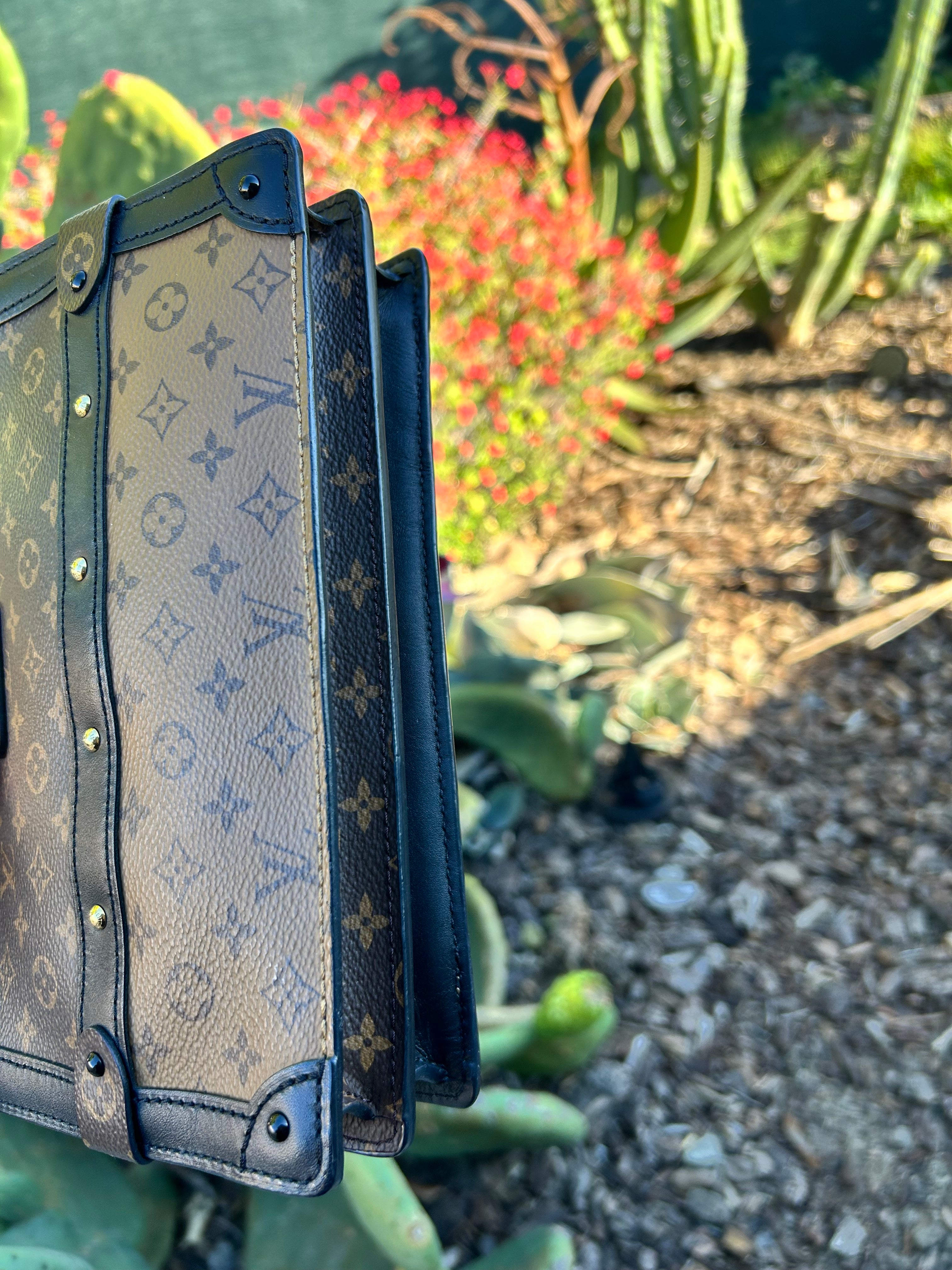Great condition. Minor smudge to leather. Minor scratches to gold hardware. Comes with detachable straps, dust bag and box.