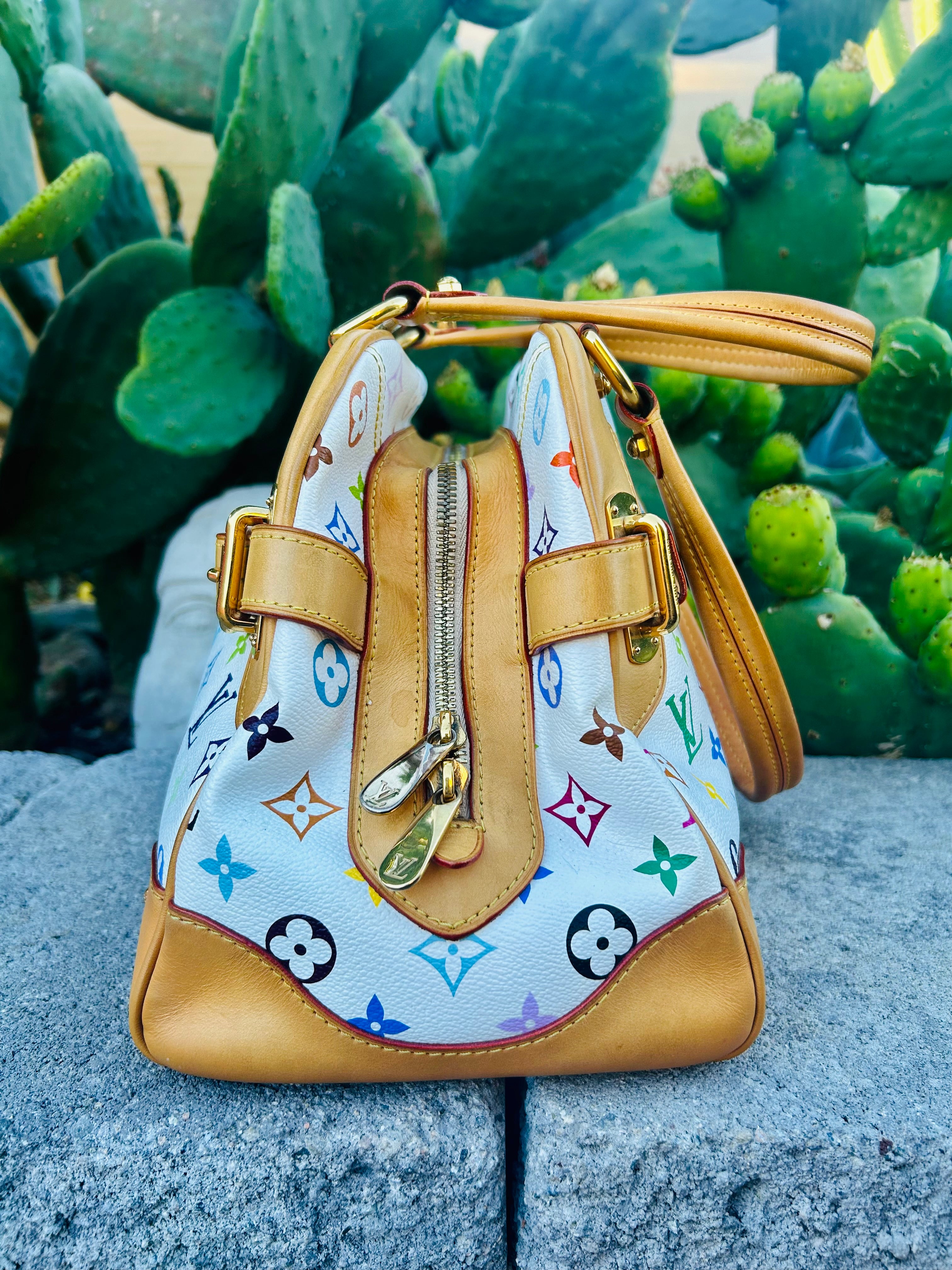 Louis Vuitton Murakami Claudia Handbag. Very good condition. Burgundy velvet interior. Dimensions 13Lx8Hx5D Handle drop: 8 inches Comes with Entrupy Certificate of Authenticity.